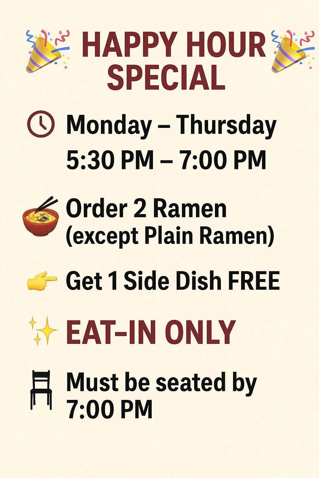 Sun-Thur 5:30pm -12:00am (Last Call @11:30pm)